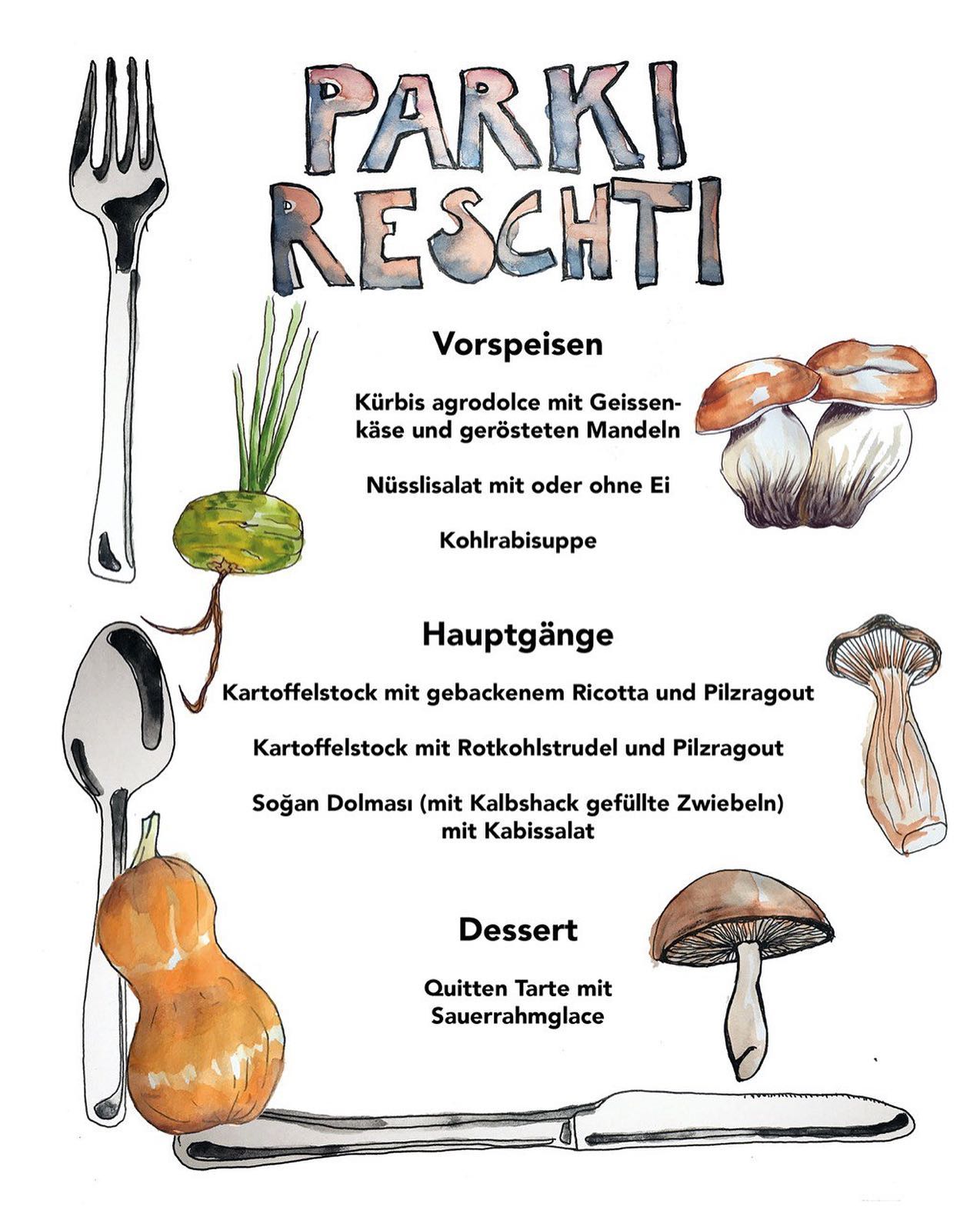 Ab Mitte November bis Ende Januar öffnen wir die Parki Winterküche und kochen vom Donnerstag bis Samstag ab 18 Uhr für unsere Gäste. Auf den Teller kommt, was dem Küchen-Team gerade in den Sinn kommt; viel Gemüse, manchmal Fisch und Fleisch, und ein bisschen Käse wird’s auch geben. Alle zwei Wochen ändern wir die Karte und starten in eine neue Runde. Spezialabende mit Parki-Klassikern wie Moules et Frites stehen ebenfalls auf dem Programm. Wein, Gazosas und Sonstiges von der Bar gibt’s wie gewohnt.
